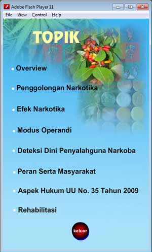 Pada tahap ini dilakukan pembuatan aplikasi dan pemrograman berdasarkan storyboard dan struktur navigasi. Tampilan pada apllikasi anti narkoba adalah sebagai berikut