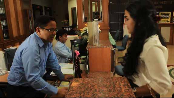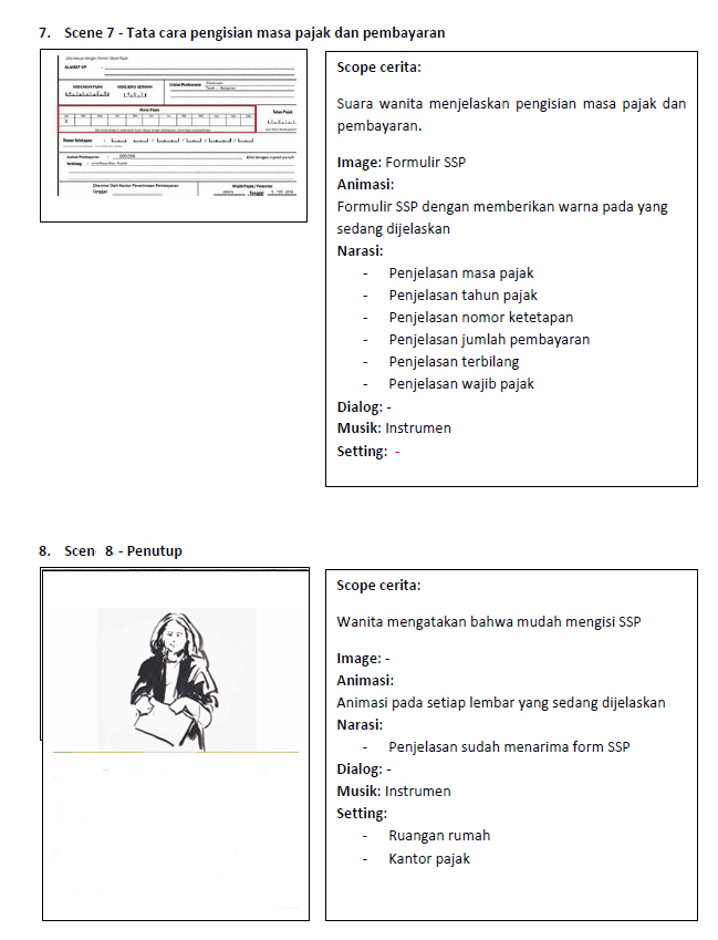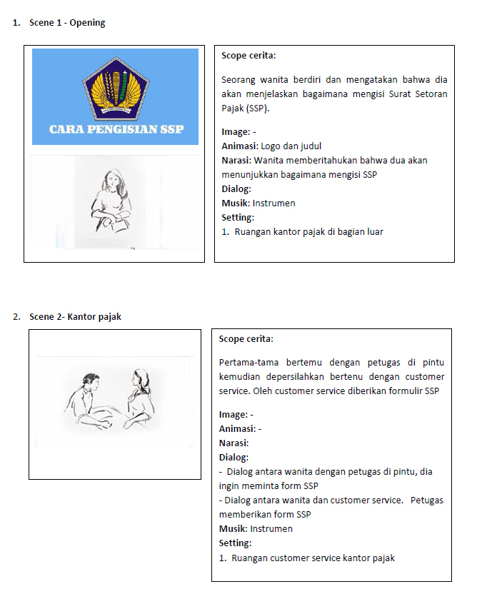 Story - Seorang wanita pergi ke kantor pajak bertemu dengan customer service meminta fotm SSP. Setelah kembali ke rumah di menunjukkan bagaimana cara mengisi SSP yang bisa dilakukan di mana saja.